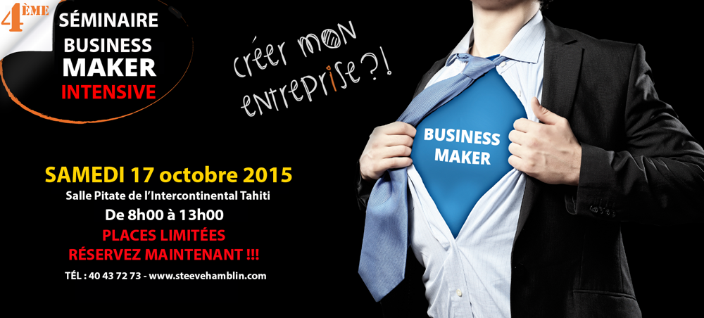 Pour tous ceux qui n’ont pas la capacité de consacrer une journée entière à se former, le séminaire “Business Maker” est disponible en format “Intensive” avec 5 heures seulement. Avec cette version condensée de Business Maker, les participants s’autoriseront une entrée en matière qu’ils ne sont pas prêts d’oublier…
